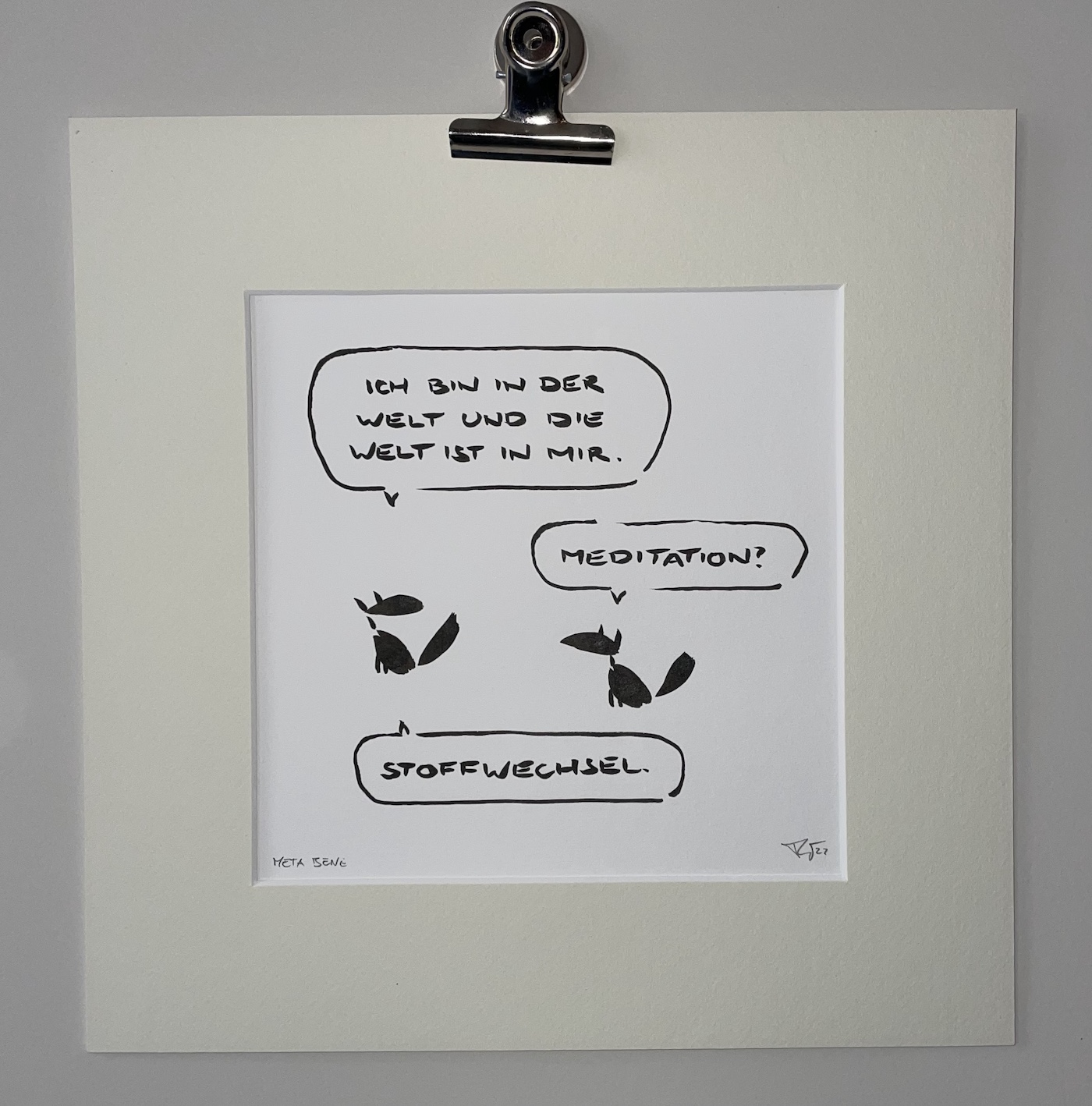 META BENE gibt es seit 2013. Die minimalistischen Tusche-Cartoons habe ich zunächst über Twitter geteilt, später auch über Instagram und Facebook. Inzwischen gibt es sie in Buchform im Handel und als handgezeichnete Original-Kalligraphien über diese Webseite.
